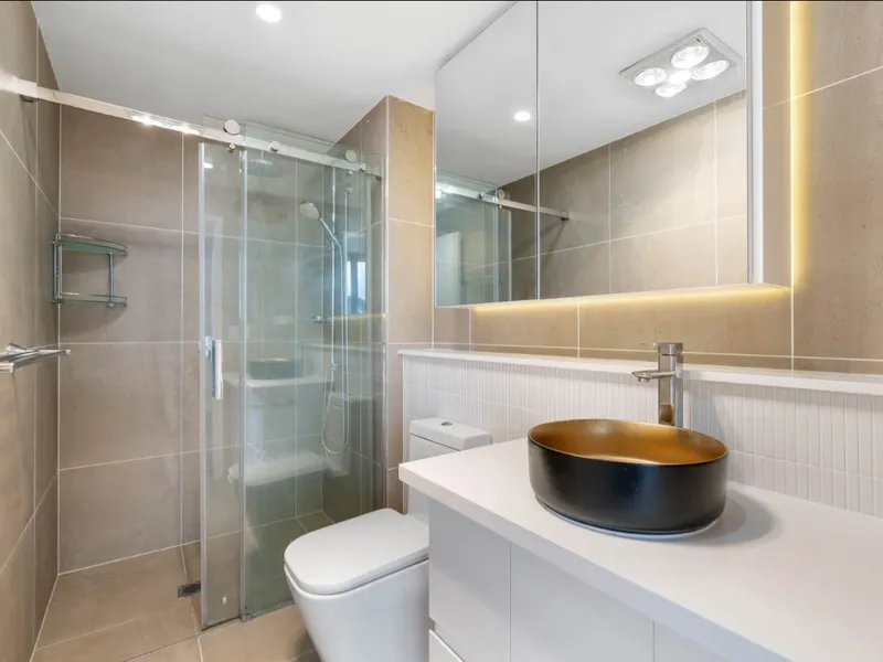 -- Stylish bathroom with sleek finishes