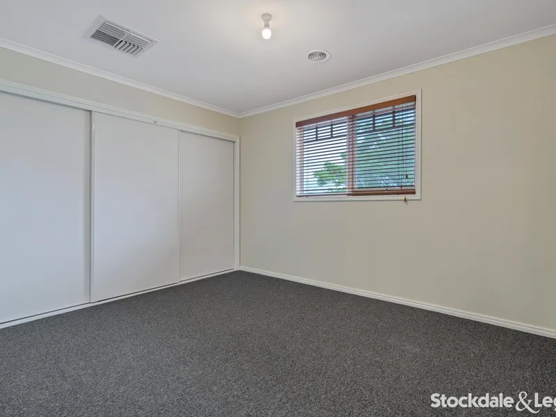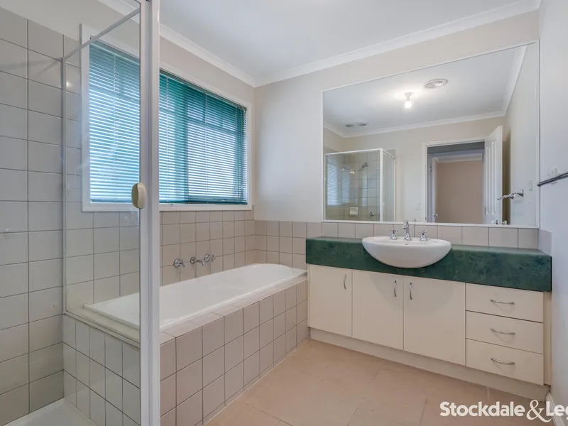 This thoughtfully designed residence features three generously sized bedrooms, each equipped with built-in robes. The master bedroom boasts a walk-in robe for added luxury. The heart of the home unfolds in a spacious open-plan living area seamlessly connected to a well-appointed kitchen complete with a dishwasher. The central bathroom, adorned with both a bath and shower, is complemented by a separate toilet.