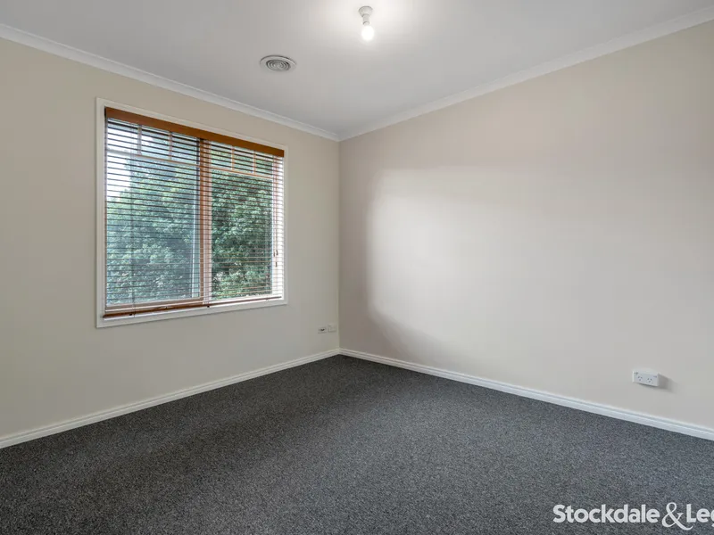 Elegance permeates every corner, with a stunning lounge room providing an ideal space for relaxation. The practicality of a powder room on the ground floor adds to the overall convenience. A separate laundry caters to your household needs, while the low-maintenance courtyard offers a private outdoor retreat.