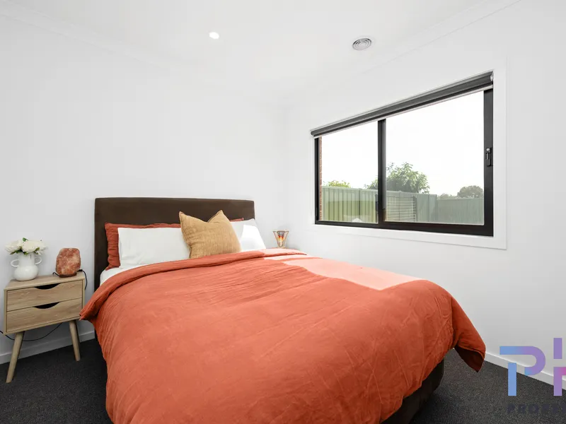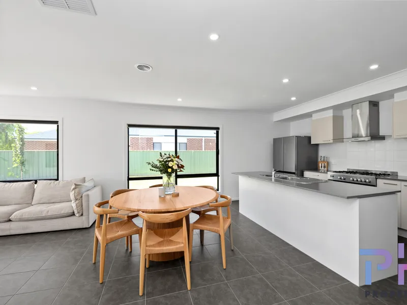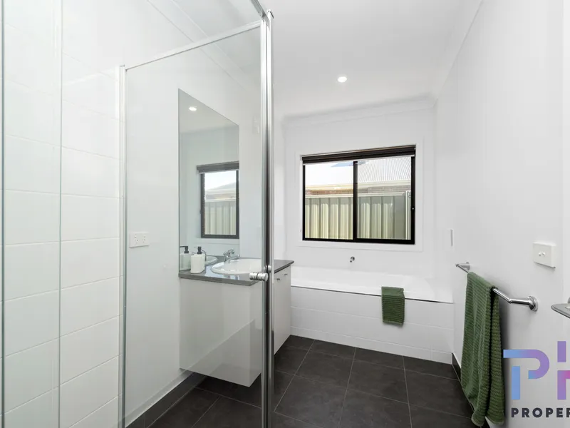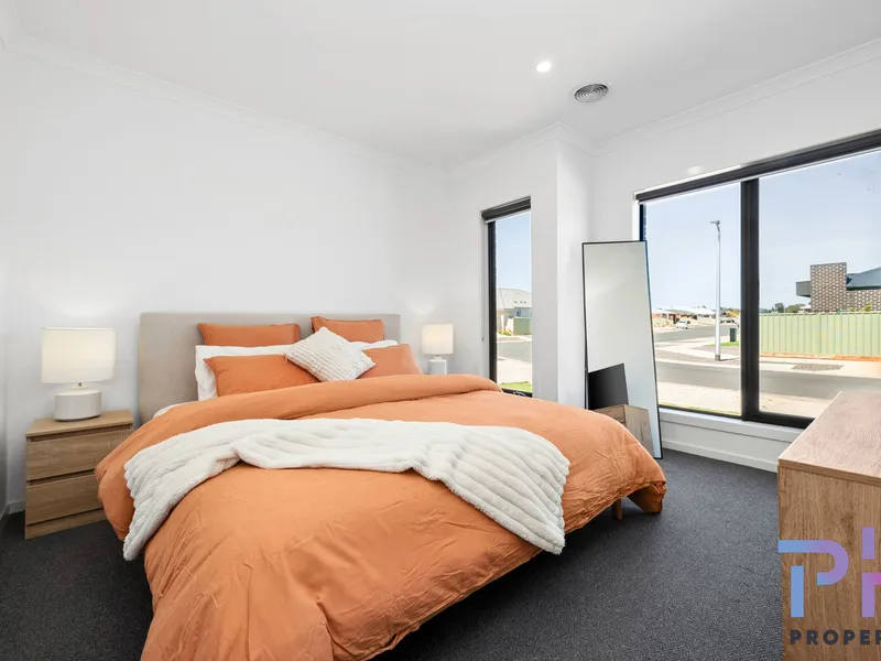 This home offers four bedrooms, including a main bedroom with a walk-in robe and an ensuite that has double basins. The open-plan kitchen, living, and dining area gets plenty of natural light, creating a bright and welcoming space. The kitchen features a 900mm freestanding oven, stone benchtops, and a walk-in pantry for extra storage. There's also a second living area that can be used as a rumpus room or home office. The main bathroom includes both a shower and a bath, with a separate toilet. The laundry has direct access to the backyard. For year-round comfort, the home has ducted gas heating and evaporative cooling. Roller blinds are fitted throughout, with tiles in the main living areas and carpet in the bedrooms.