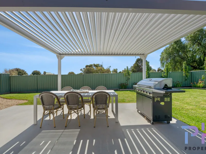 Outside, theres a large backyard with a lawn and side access through double gates. A covered alfresco area with an opening pergola is great for entertaining. The yard also includes neat landscaping, a garden shed, and a fire pit area for extra outdoor space. The double garage has internal access to the house.