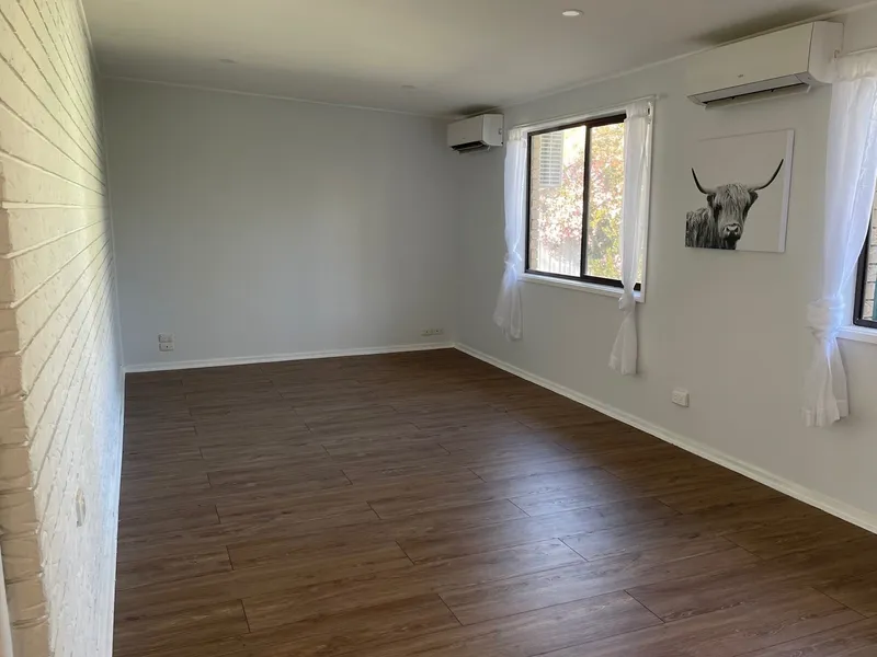 This home is located in a quiet street in the popular subrub of Estella. Close to medical centre, schools, daycare and university. 3 good sized bedrooms, the main room features built in robes. 2 living and dining spacious offer a flexible living arrangement and an updated kitchen with stainless steel gas appliances. Gas wall furnace heating and evap cooling throughout, also bonus of 2 split system units in the second living area. The bathroom is of good size all neat and tidy and has a shower, bath tub and toilet is separate for convenience. Externally there is a large spacious secure yard. Chooks pen, garden shed, entertaining area, gated carspace and a single lockable shed.