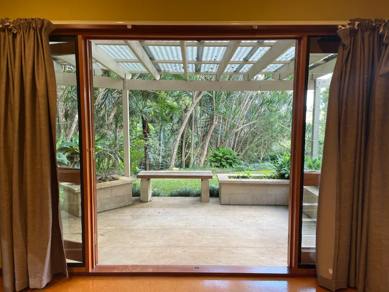 Lovely home surrounded by nature and built from natural materials nestled in the Byron Bay hinterland on a quiet no through road. Light the fire box and enjoy visits from birds and wallabys.