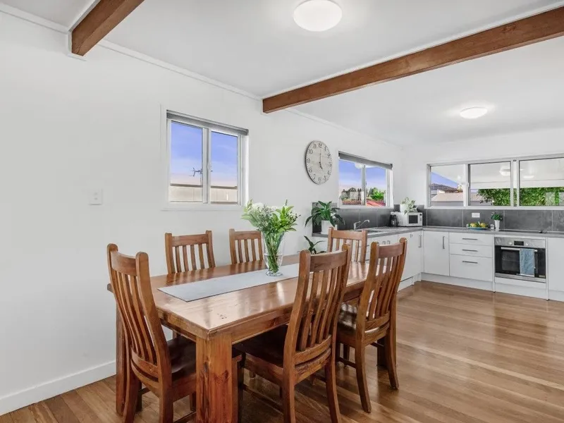 Open-plan living and dining area filled with natural light