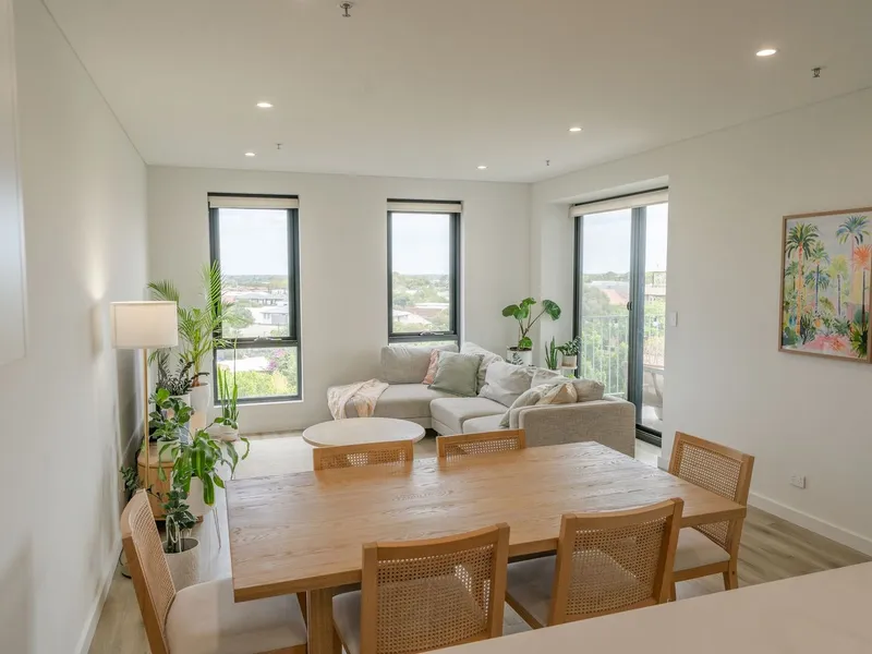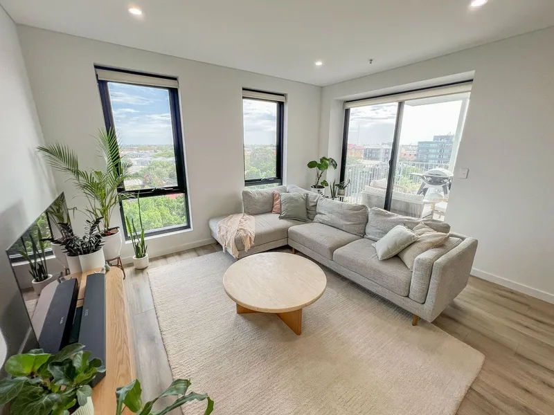 - Light filled living area with polished timber floors