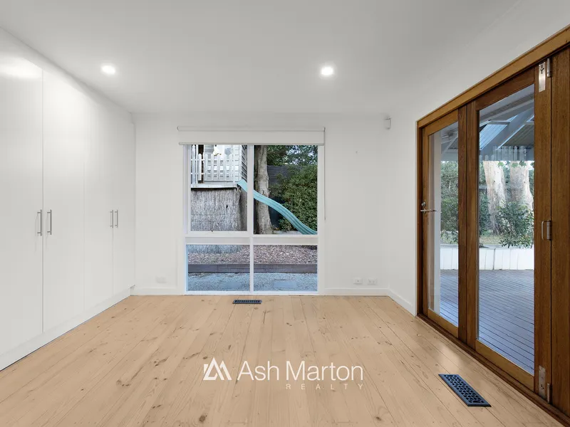 - Open-plan living and dining areas feature bifold doors opening to a large covered deck overlooking the backyard