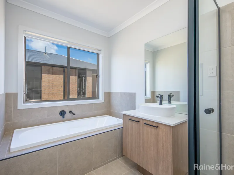 • Main bathroom - bath, shower with built in alcove, vanity, finished with sleek black fixtures/fittings, separate toilet