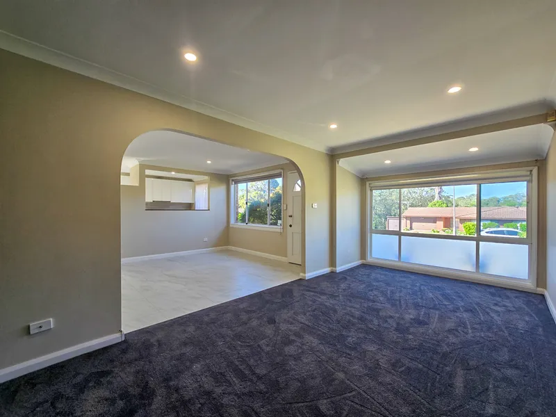 The practical floorplan features multiple living zones, including a formal lounge and an open-plan family and dining area, complemented by a renovated kitchen with ample cupboard and bench space. Outdoors, the property boasts generous paved front and rear courtyards, perfect for relaxing or entertaining.
