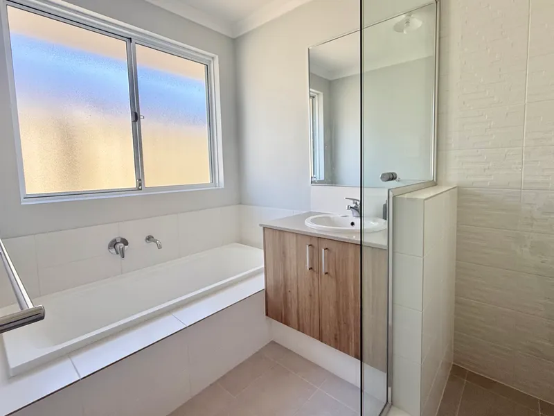 The well-appointed bedrooms include built-in mirrored robes, while the master suite provides the added privacy of its own ensuite. A centrally located main bathroom with a bathtub and quality finishes services the rest of the home.