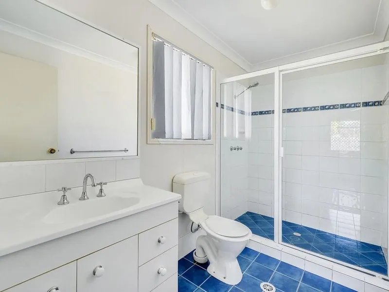 # Ensuite featuring well sized shower cavity, storage to vanity and toilet.