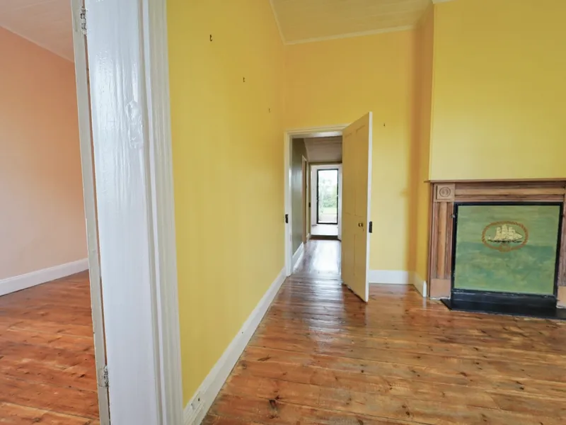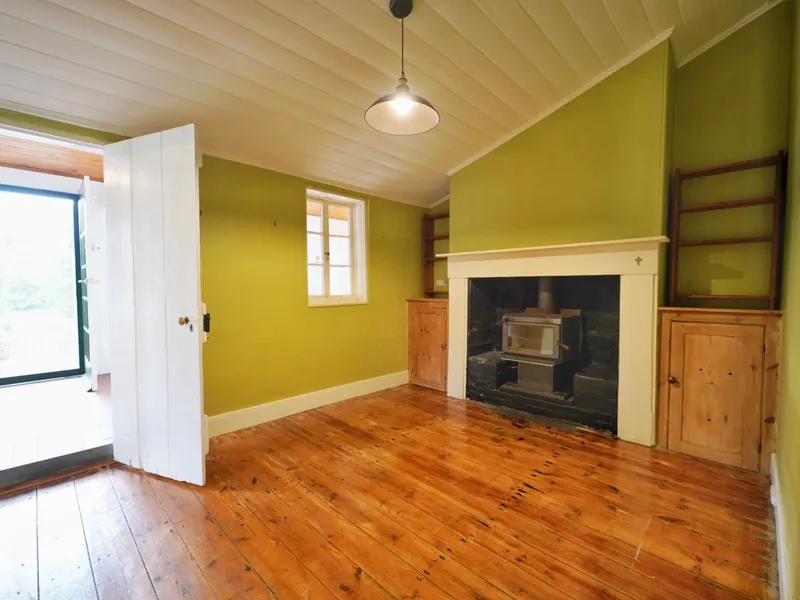 Step through the front door and into the original four-room cottage. High ceilings rise above polished timber floors, and original fireplaces stand as quiet guardians of winters past. The lounge located at the front of the property is warm, and light-filled. The adjoining dining room glows warmly with its combustion heater - perfect for cosy dinners as the seasons turn.