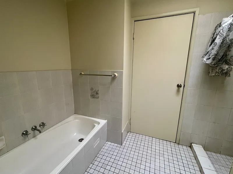 3 bedroom unit with built-in robes, open plan kitchen and dining, 2-way bathroom with bathtub.