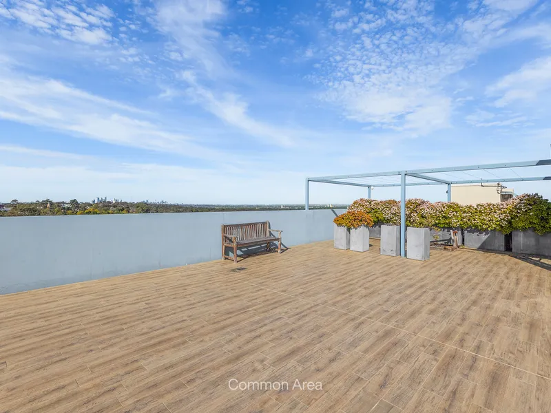 Inside, you'll find chic engineered floors, lofty ceilings, a sleek gas kitchen, and a spacious balcony ideal for alfresco dining. The apartment also includes access to a communal rooftop terrace in a modern, secure complex that enhances everyday convenience. Please note, this property is furnished.