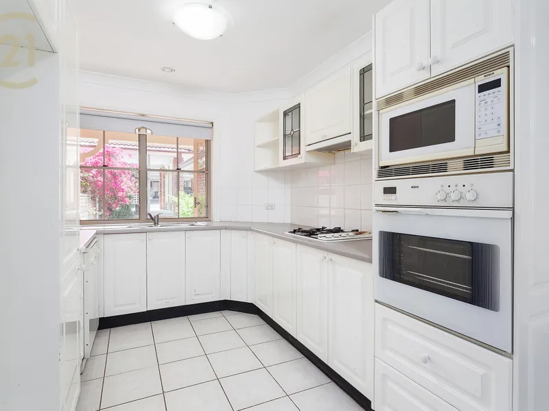 - Gourmet kitchen with stainless steel appliances, stone benchtop, gas cooking and ample storage