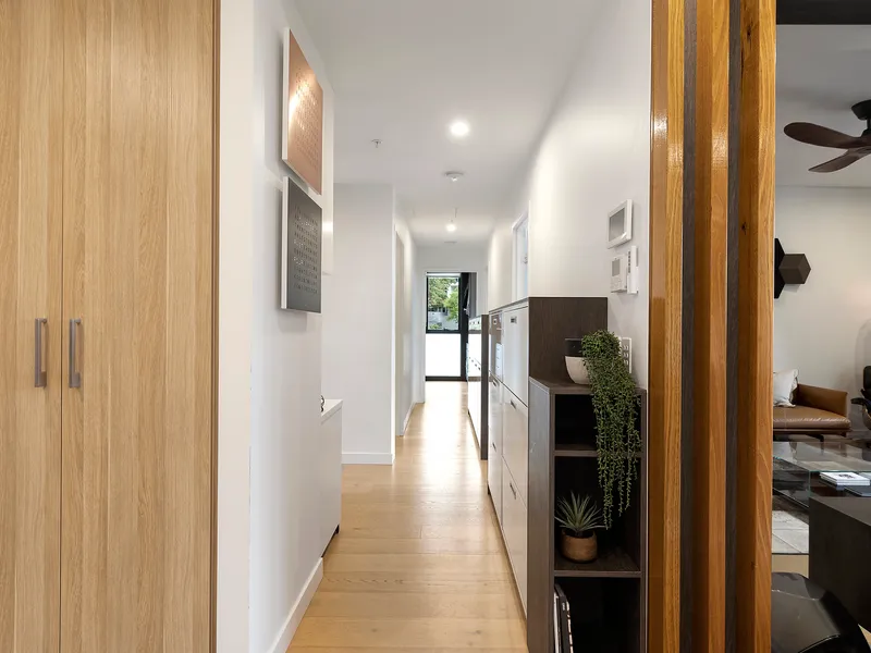A statement of style, space and innovation, a careful curation of designer enhancements redefine everyday living. From a smart lock and original Muuto dots upon entry to natural wood details throughout, iconic artistry meets functionality at every turn.