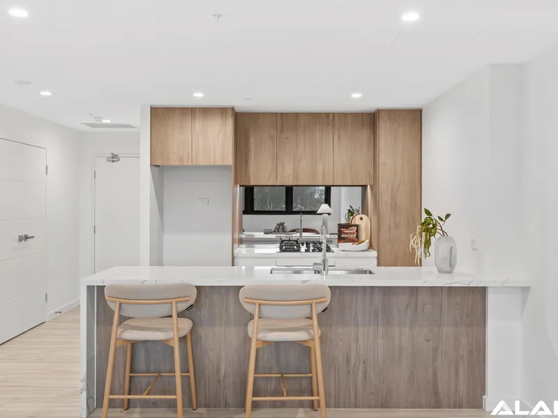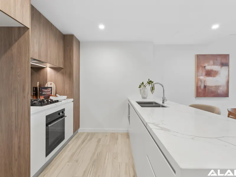 Positioned high within The Archibald by ALAND, this beautifully presented two-bedroom apartment enjoys a sought-after west-facing aspect, capturing warm afternoon light and glowing sunset views across the district.