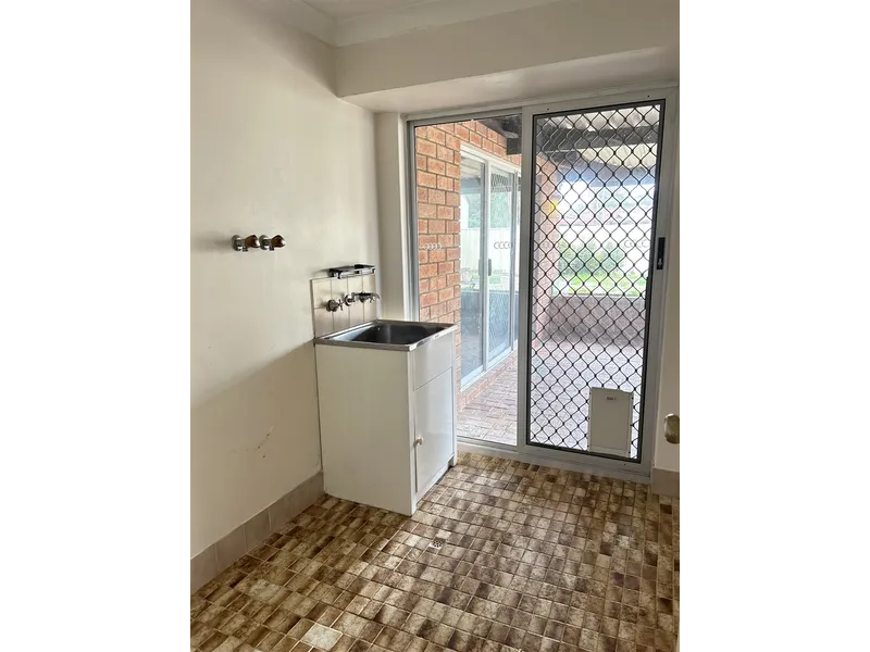 All three bedrooms are well-sized and serviced by a centrally located family bathroom, while the separate laundry provides direct outdoor access for added convenience.