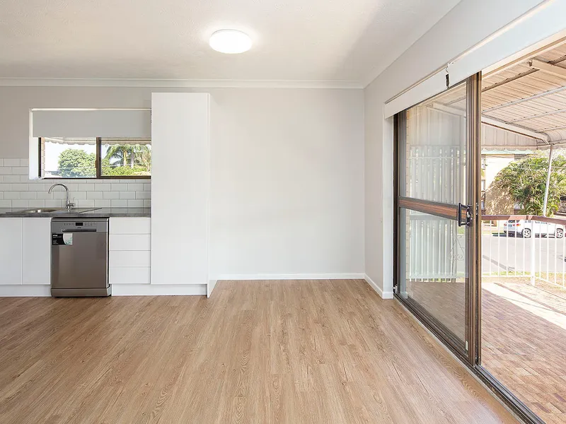 As you enter the home you are greeted by the open plan living, dining and kitchen area. This space is serviced by an air-conditioner, ensuring comfort all year round. The functional kitchen sits off to the side, complete with an electric cooktop, oven, rangehood, and ample bench and cupboard space. Off the lounge is a spacious balcony, great space to sit for your morning coffee.