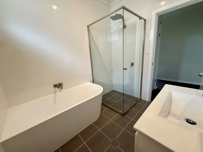 The brand new bathroom has been finished in a contemporary style and includes a separate shower and bathtub, while the spacious new laundry offers built in storage and the added convenience of a second toilet.