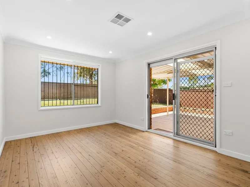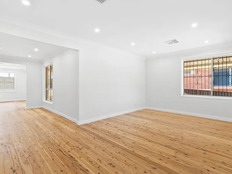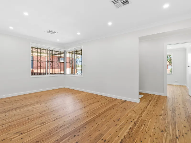 A recently renovated, four-bedroom, two-bathroom home. Step inside to a warm, inviting atmosphere, with elegant flooring enhancing the home’s charm. The well-equipped kitchen features a built-in stove and dishwasher, while the open-plan living and dining areas create a seamless space for relaxation and entertaining.