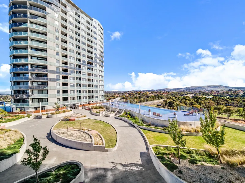 Perched on the 14th floor of "'Infinity', one of Gungahlin's most desirable addresses, this 2 bedroom ensuite apartment has a large open-plan kitchen, a sunlit open-concept living space, and a covered balcony that captures spectacular sunsets and the mountains beyond.