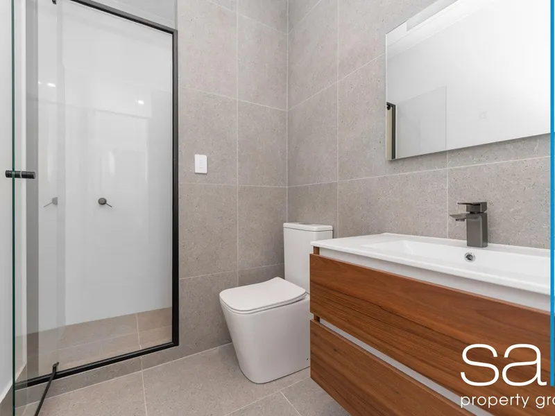 • Modern kitchen offers stainless steel appliances, 4x burner gas stovetop, tiled splashback, oven, rangehood, dishwasher, pantry, fridge recess, double sink vanity with mixer tax, breakfast bar and ample storage