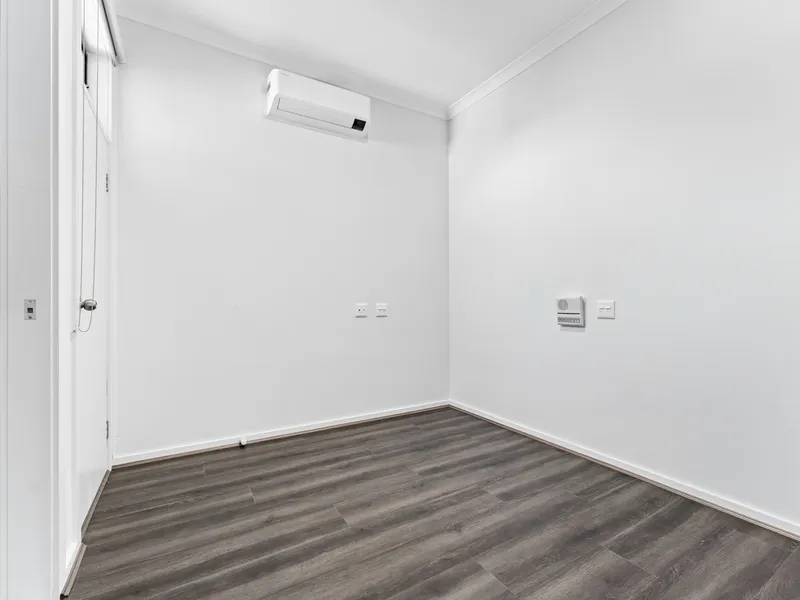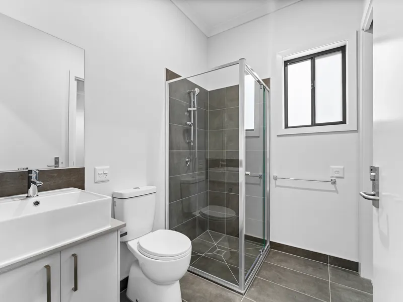 This beautifully designed home features three generous bedrooms, including a master bedroom complete with a private ensuite and walk-in robe. The remaining bedrooms are fitted with built-in robes and are serviced by a sleek central bathroom.