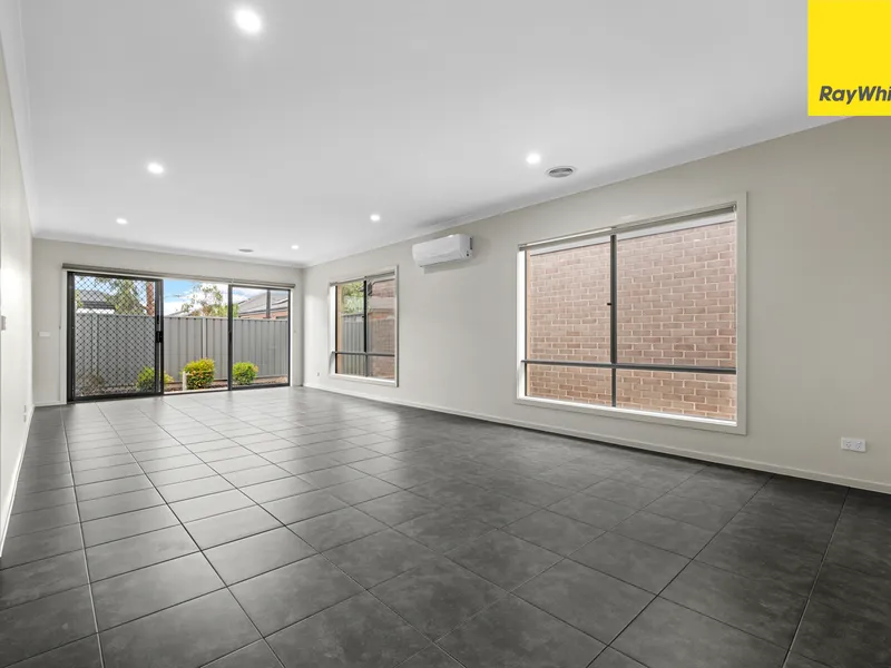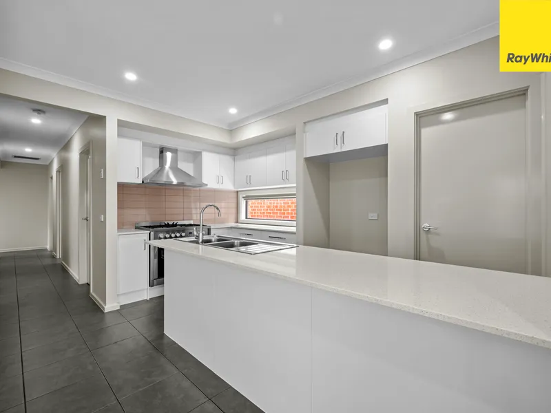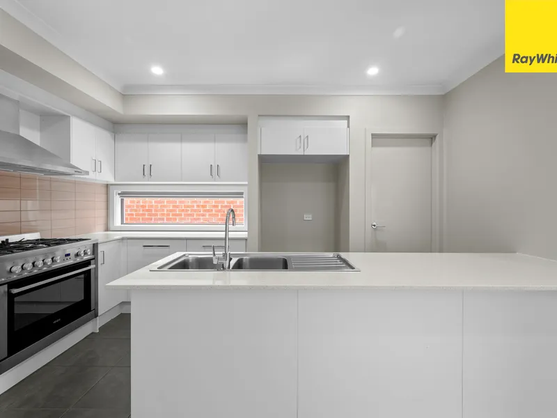The home features a practical and low-maintenance design with modern finishes throughout, offering a stylish yet functional living environment. The open-plan living and meals area flows seamlessly from the contemporary kitchen, creating a welcoming space for everyday living and entertaining. A secure garage provides peace of mind along with convenient internal access.