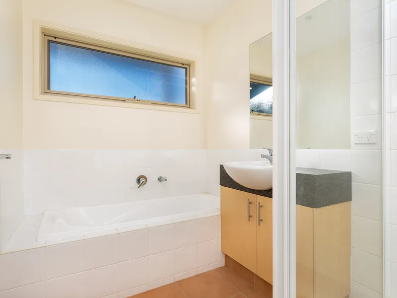 The bathroom includes a separate toilet, and the laundry provides external access to the neatly maintained backyard.