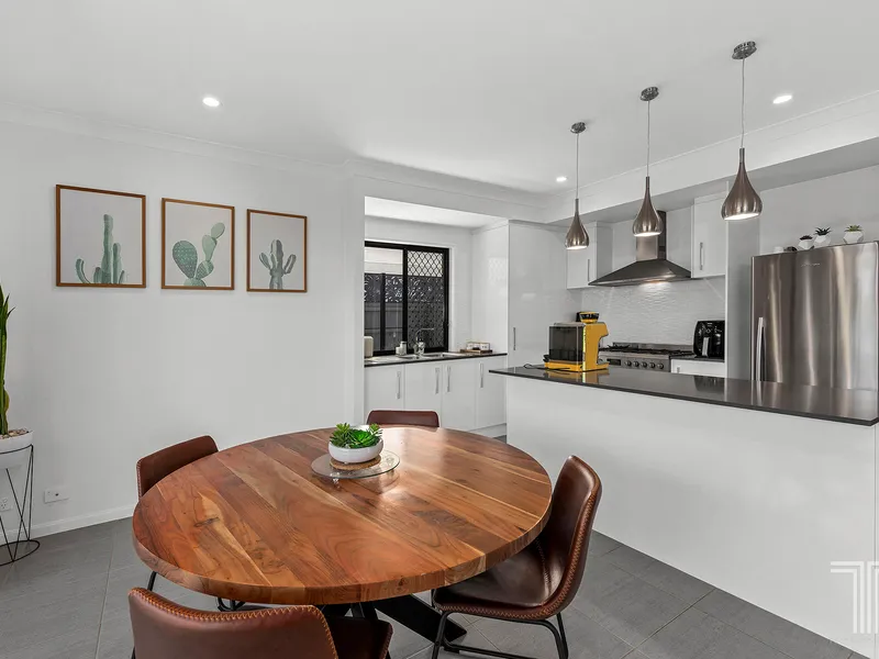 Positioned in the sought-after Heathwood Hilltop precinct, this beautifully finished modern home offers comfort, style and convenience in one impressive package. Thoughtfully designed with high-end touches throughout, the home features luxurious inclusions such as slimline dimmable lighting and elegant shutter blinds, creating a warm and sophisticated atmosphere.