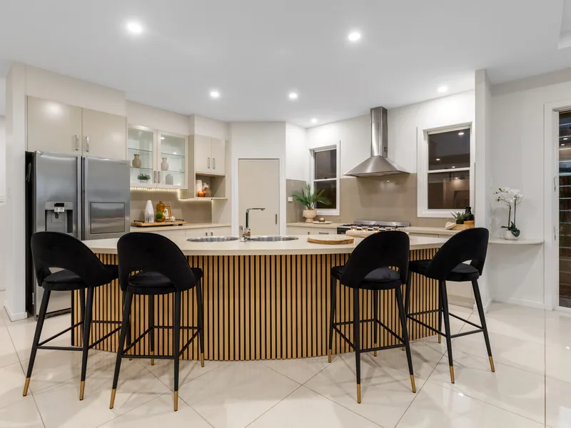 The heart of this residence is the open-plan living area, where a gourmet kitchen, expansive dining area, and large lounge unite to create an atmosphere of space and sophistication. Wide stacker doors extend the living area to a spacious, covered alfresco entertainment zone, providing an effortless flow between indoor and outdoor spaces. Overlooking a sparkling 10x4-meter inground pool, surrounded by a deck and lawn, this outdoor oasis is perfect for entertaining or simply relaxing and enjoying the views.