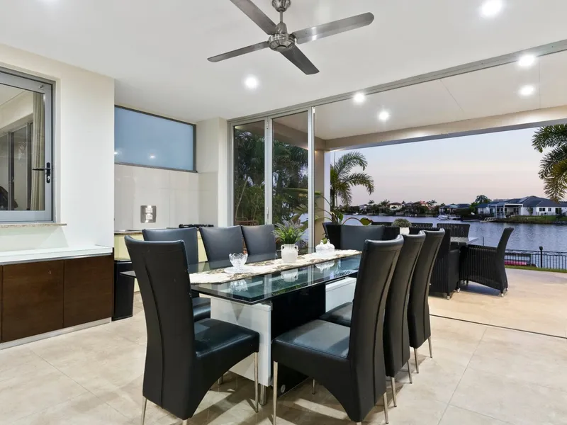 This waterfront residence blends modern luxury with impeccable craftsmanship in one of the Gold Coast's most exclusive gated enclaves. Short driving distance to Hope Island's golf courses, The Pines Gold Coursequality restaurents, Sanctuary Cove, and retail precincts, along with quick access to the M1 & M9 (Coomera Connector), Theme Parks, Coomera Indoor Sports Centre.