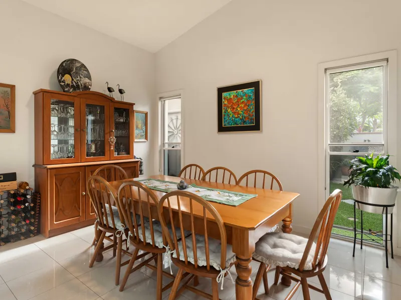 Light-filled living areas are designed for everyday ease, with an open-plan layout creating a central hub for the home. Large windows allow natural light to flow throughout the living and dining spaces, while the layout connects seamlessly to the outdoor area-perfect for entertaining guests or enjoying a quiet afternoon outdoors.