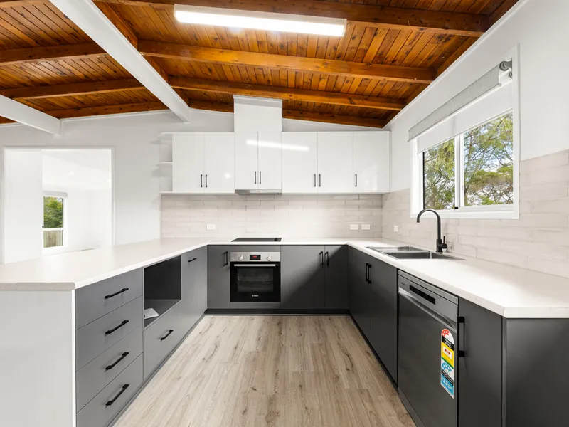 The modern kitchen is well equipped with an electric oven and induction cooktop, rangehood and dishwasher, complemented by a double bowl sink, island bench with breakfast bar, microwave nook, massive walk-in pantry, plumbing for the fridge and ample bench and cupboard storage to suit family needs.