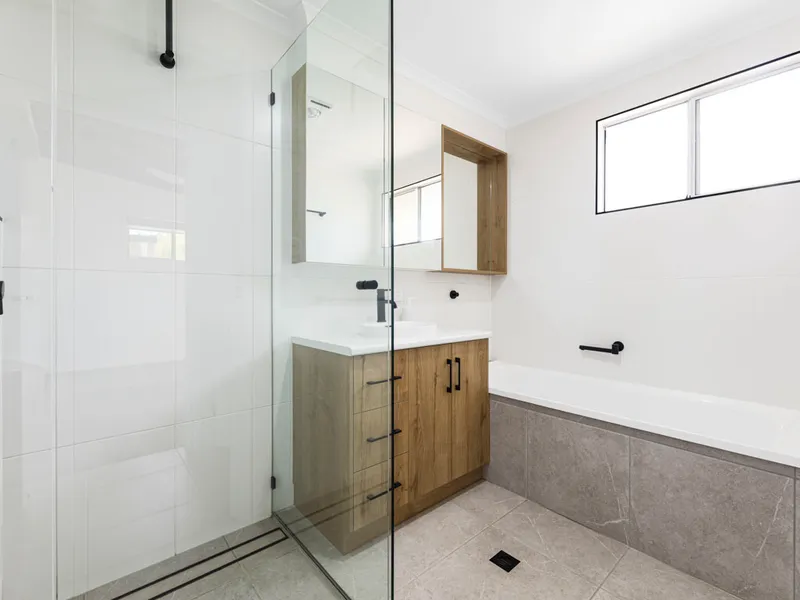The family bathroom hosts a separate shower, bathtub and vanity, while a separate toilet positioned off the hallway adds convenience for busy households. An internal laundry featuring wash tub, built-in storage and external access to the yard further enhances practicality.