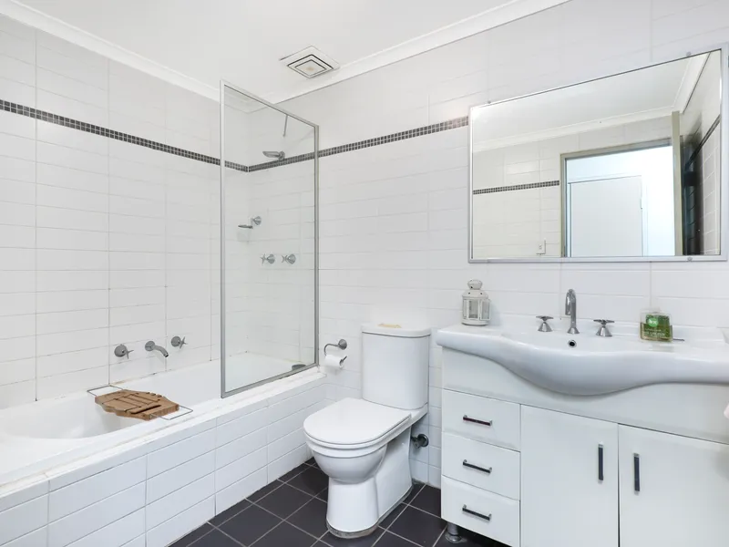 - Tiled to the ceiling bathrooms. Main bathroom with bathtub