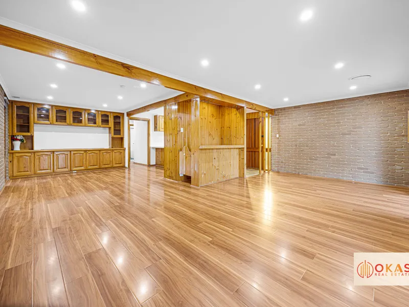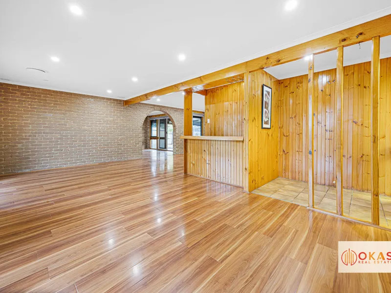 Designed for comfortable living, the home features multiple living zones, including a formal lounge at the front and a spacious family room at the rear. The kitchen boasts ample cupboard space and overlooks a large meals area, perfect for everyday living and entertaining.