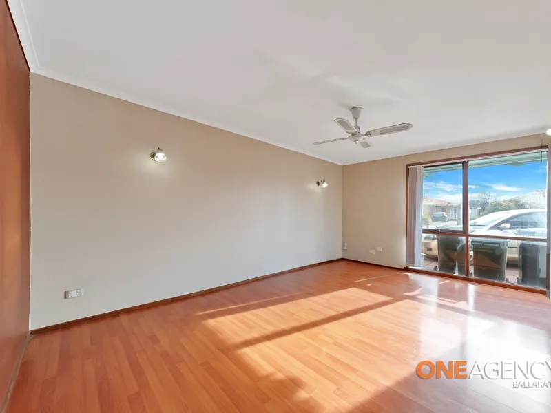 - Spacious lounge room with floating floorboards and split-system heating and cooling