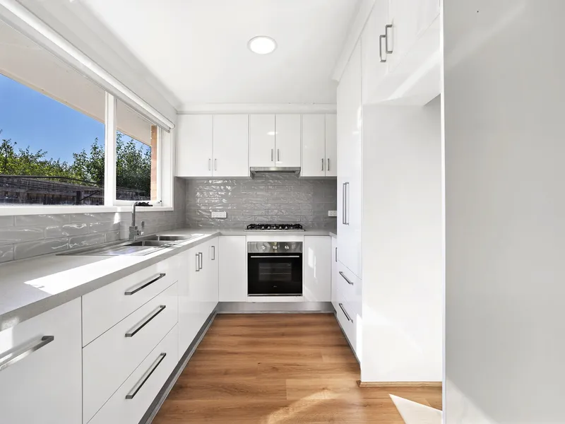 - Functional kitchen equipped with quality gas appliances and ample cupboard space, seamlessly flowing into the meals area