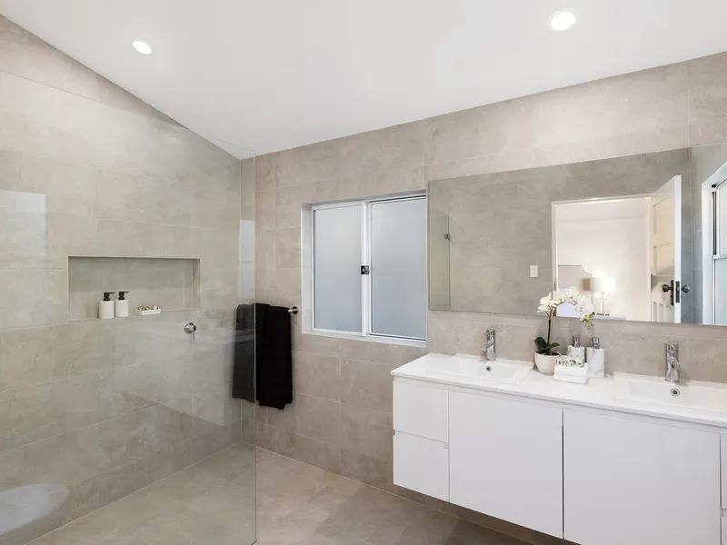 - Double brick with sleek interiors reveal polished timber floors, high ceilings