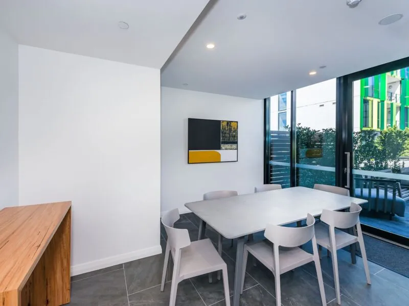 The apartment features a contemporary open-plan design with light-filled living and dining spaces that flow onto a private balcony – ideal for relaxing or entertaining. A modern kitchen with quality appliances and stone benchtops makes everyday living easy, while the thoughtfully designed layout maximises space and functionality.