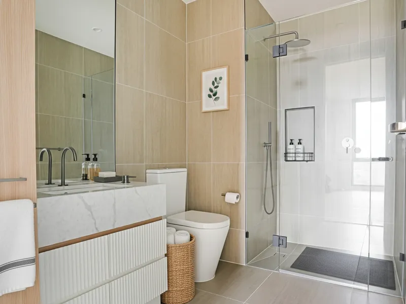 • Two luxuriously finished bathrooms with contemporary fixtures and elegant tiling, reflecting refined attention to detail throughout each residence.