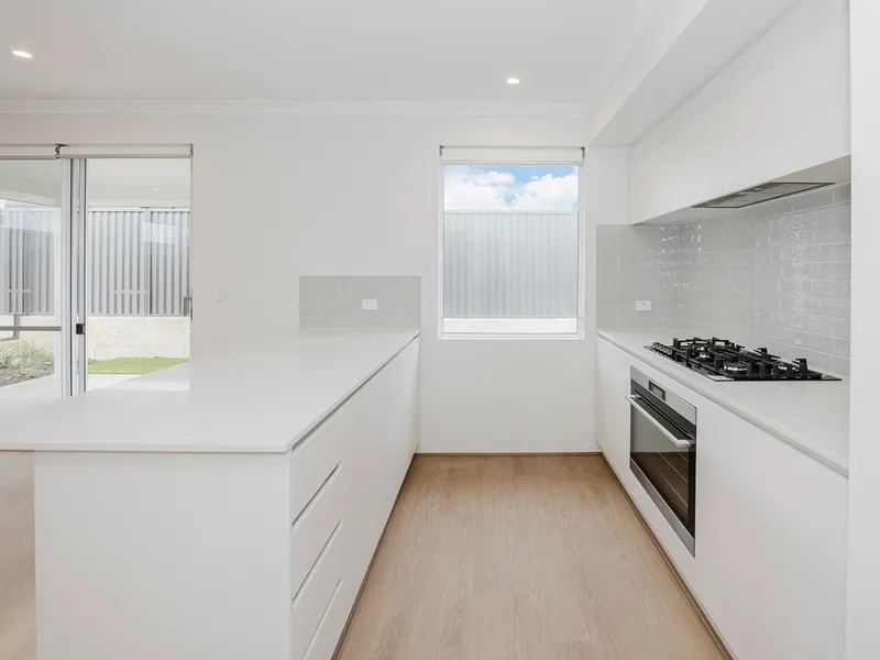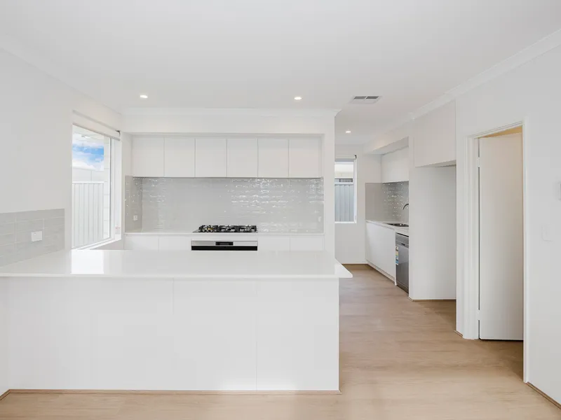 At the heart of the home, the open-plan lounge and dining area provides a bright, versatile space for daily life, flowing seamlessly into a high-end kitchen. Designed for the home chef, the kitchen features a massive stone island bench and a butler's pantry to keep the main prep area clutter-free. For added convenience, the laundry is located directly off the kitchen, acting as a functional utility zone with an abundance of built-in cupboard space throughout.