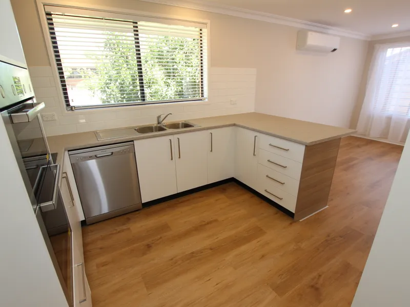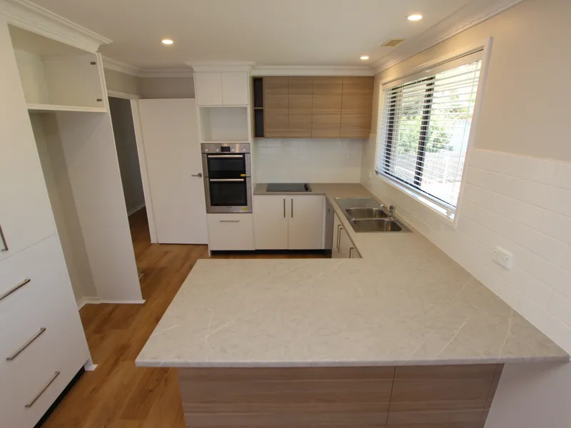 This classic 3-bedroom family home in Kaleen is what you have been waiting for. Set back well on the block, its elevated position enjoys a lovely outlook. At the front of the home, hybrid timber flooring flows throughout the generous separate living area and into the meals area and kitchen, giving the home a warm contemporary ambiance. The renovated kitchen has a smart Scandi look with timber features that highlight the crisp white cabinetry and is complete with new stainless steel appliances including a dishwasher.