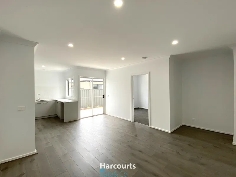 Boasting three spacious bedrooms with built-in robes, including a master suite with a walk-in robe and a luxurious ensuite, this home offers comfort and elegance. The modern kitchen features high-end stainless steel appliances, a dishwasher, Caesarstone countertops, and plenty of storage space. The open-plan living and dining area is perfect for relaxation, while the central bathroom, study nook, and European laundry add practical touches. Enjoy the low-maintenance backyard and the convenience of a single remote garage with secure internal access.