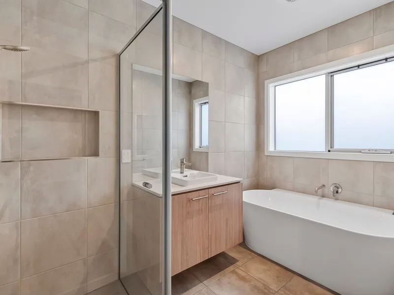 Step inside to a light-filled interior featuring quality finishes and a thoughtfully designed floorplan. The spacious master bedroom is privately positioned at the front of the home and includes a walk-in robe and a sleek ensuite with a double vanity, creating the perfect retreat.