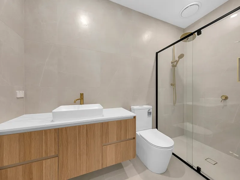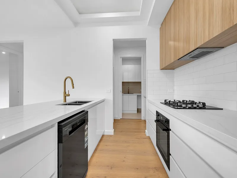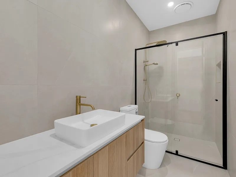 The sleek, well-appointed kitchen boasts stone benchtops and quality stainless steel appliances, seamlessly overlooking the expansive open-plan living and dining area. Enhanced by modern comforts such as refrigerated heating and cooling, LED downlights, ambient LED strip lighting, and a built-in TV unit with fireplace, the home offers both style and functionality throughout.
