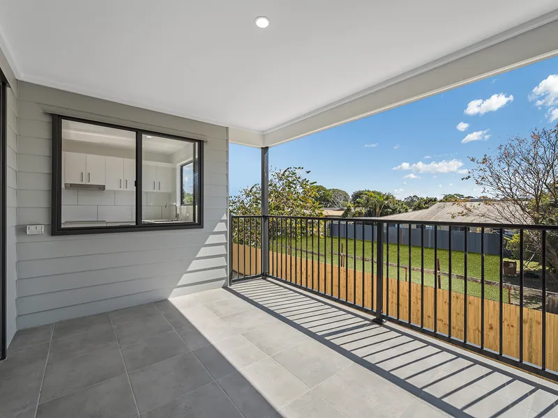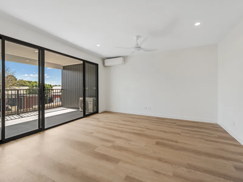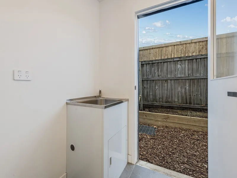 The open-plan living and dining area flows to a balcony through a handy servery window from the kitchen, creating a smooth connection between indoor and outdoor spaces. A private courtyard offers a low-maintenance outdoor area, perfect for relaxing or accommodating small pets.