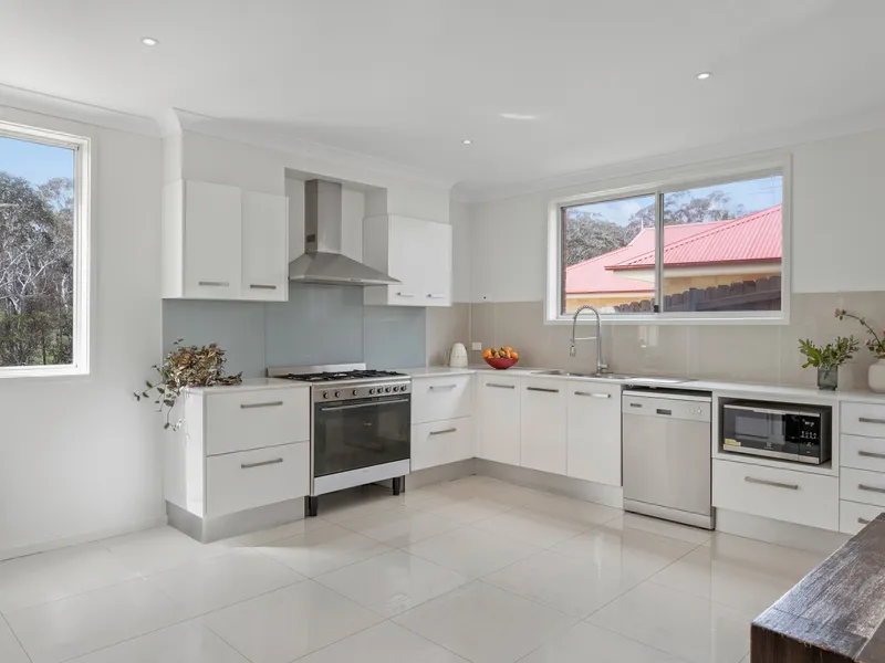 Nestled on a sunlit corner in one of Katoomba's charming streets, this near-new residence, just seven years old, combines contemporary style with quality finishes, offering the perfect family retreat. Designed over two spacious storeys, this modern home features five bedrooms and multiple living areas, all set on a desirable corner block with serene bushland outlooks.