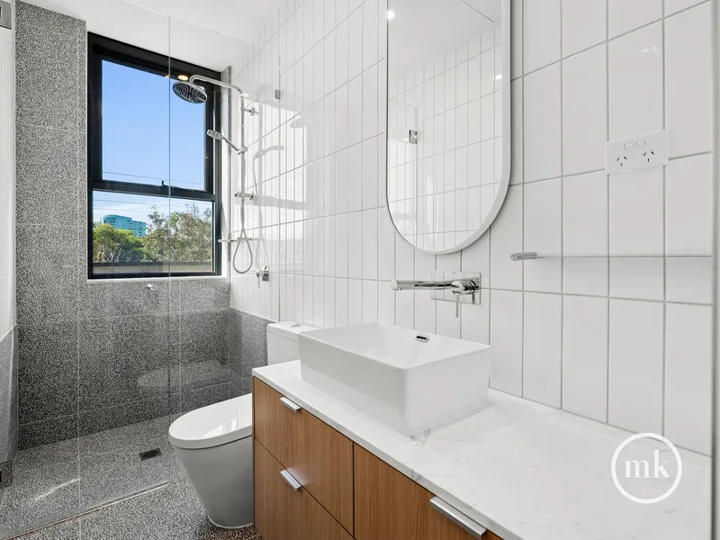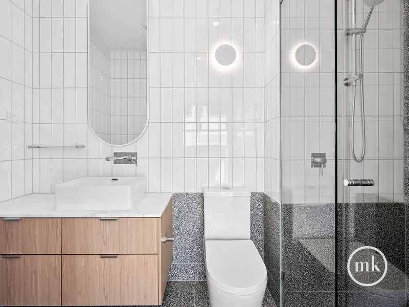 With two private balconies, this apartment offers a unique lifestyle opportunity. The bathrooms are designed with sophistication in mind, showcasing terrazzo tiling and stylish black tapware. Additional features include internal laundry facilities, ducted heating and cooling, secure basement parking and storage cage, and video intercom for added peace of mind. Located just 4km from the city and close to Macaulay Station, shops, cafes, and parks, this is an opportunity not to be missed!